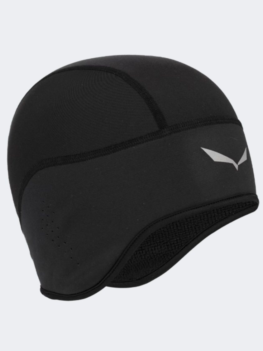 Windproof, warm, breathable, wicking, slim fit beanie for use with any type of mountaineering helmet. The snug fit with additional polarlite stretch inserts provides freedom of movement while the windproofed forehead and extended ear sections deliver ultimate wind protection. With flat lock seams for added comfort and a reflective SALEWA logo.