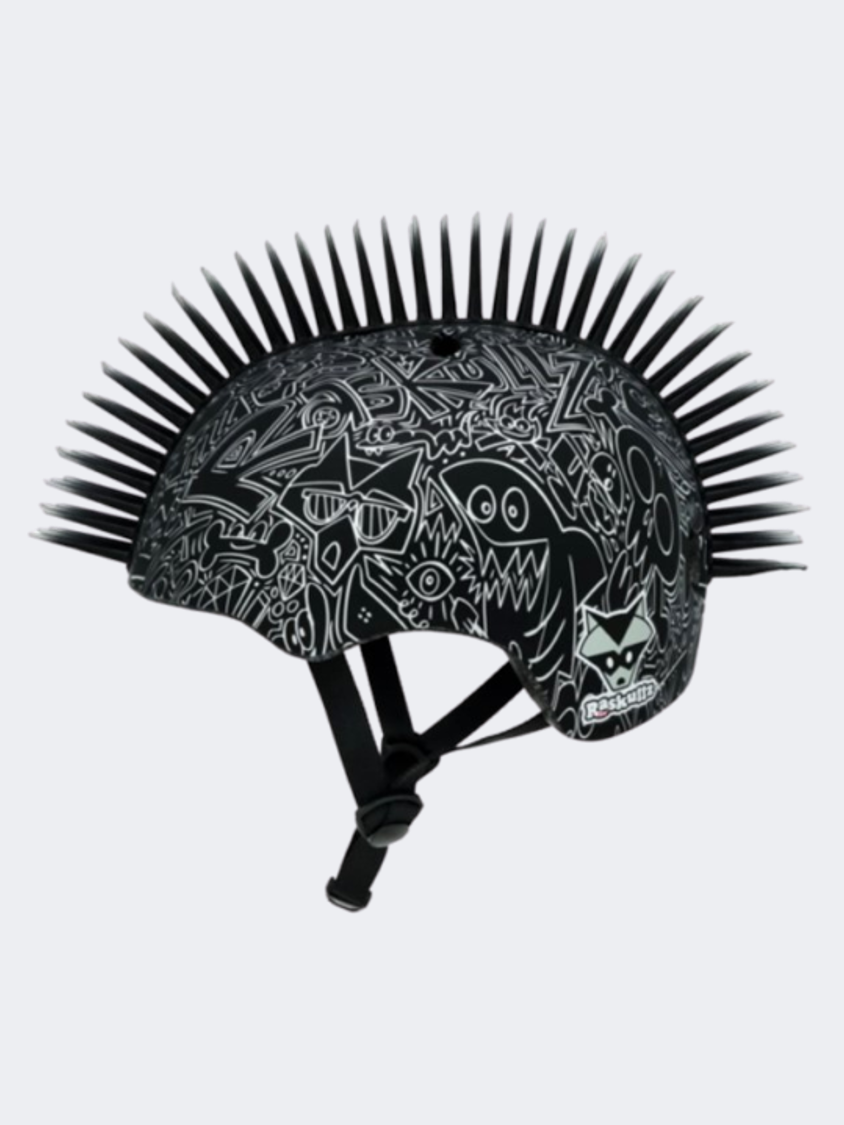 Get creative in the Raskullz Doodle child helmet! The helmet features a black flexible 3D rubber mohawk with silver tips. The awesome metallic silver doodled character printed graphics bring so much fun when you ride your bike skateboard or scooter! Recommended for ages 5-8 years old but will fit anyone with a head measuring 50-54cm. Always take a head measurement. Head sizes and shapes can vary even within an age range. Using a helmet that doesn t fit can be dangerous.