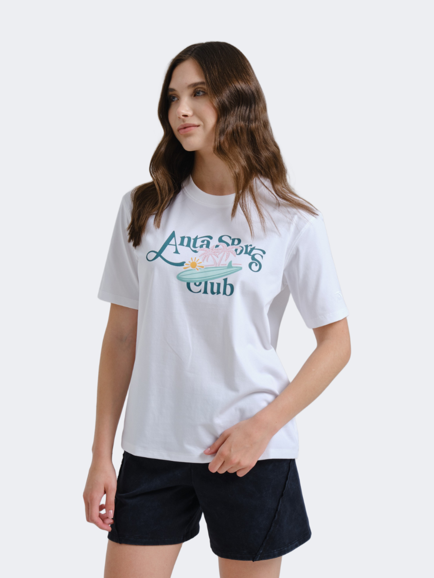 Anta Blue Heart Green Mind Women Lifestyle T-Shirt White
