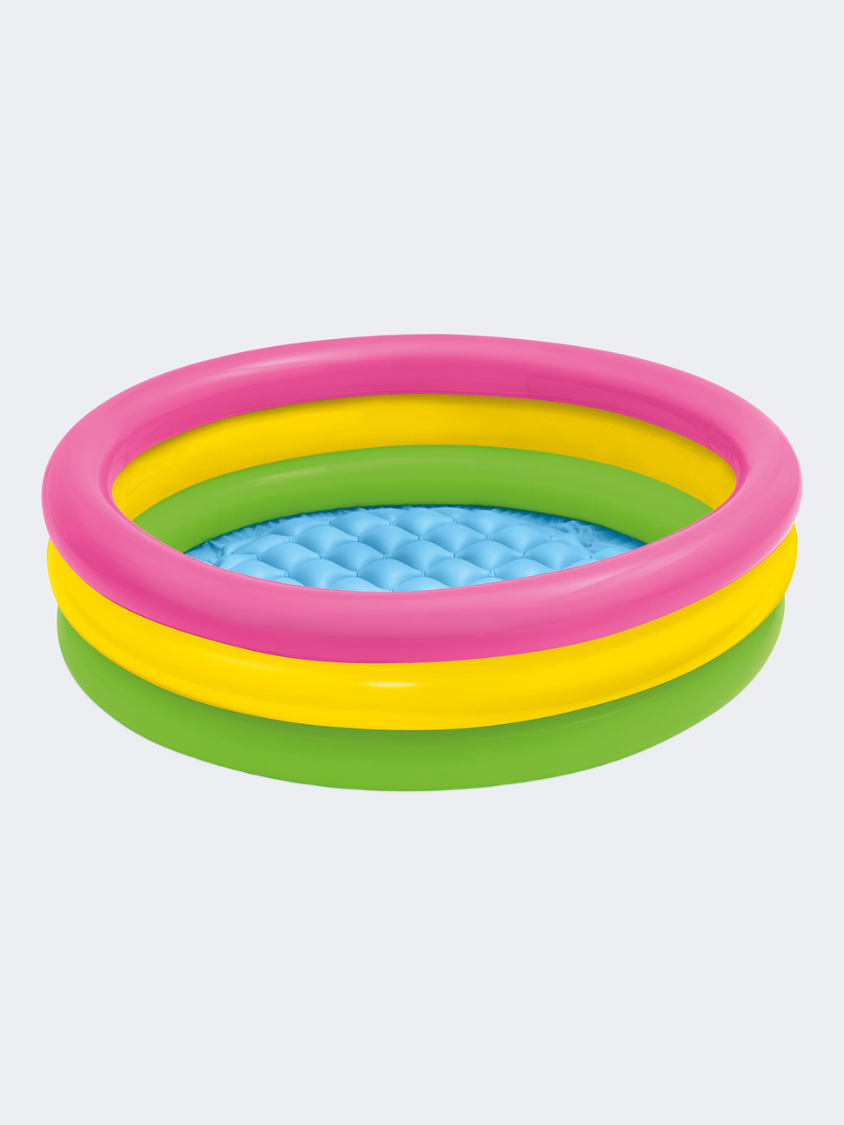 Make a splash this summer with the colorful Sunset Glow Baby Pool. This cute baby pool has three colorful air rings and a soft inflatable floor for comfort.