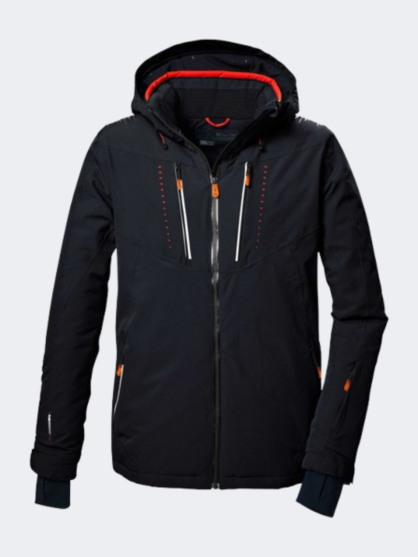 The killtec men's functional jacket impresses with its highly functional properties and clever features. You will be impressed by the air-permeable Dermizax coating, which offers a good balance between insulation and breathability (water vapor permeability 10,000 g/m²/24 h). Thanks to the underarm ventilation, a pleasant body climate is guaranteed. The jacket has welded seams, a waterproof zipper and is waterproof and windproof (20,000 mm water column. Tip: the jacket should be re-impregnated from time to time). The 4-way stretch material promises you plenty of freedom of movement. Equipped with a non-slip snow guard, a ski goggle pocket and a ski pass pocket, the jacket leaves nothing to be desired. The zip-off hood and hem are adjustable. The adjustable sleeve ends are equipped with comfortable Lycra cuffs.