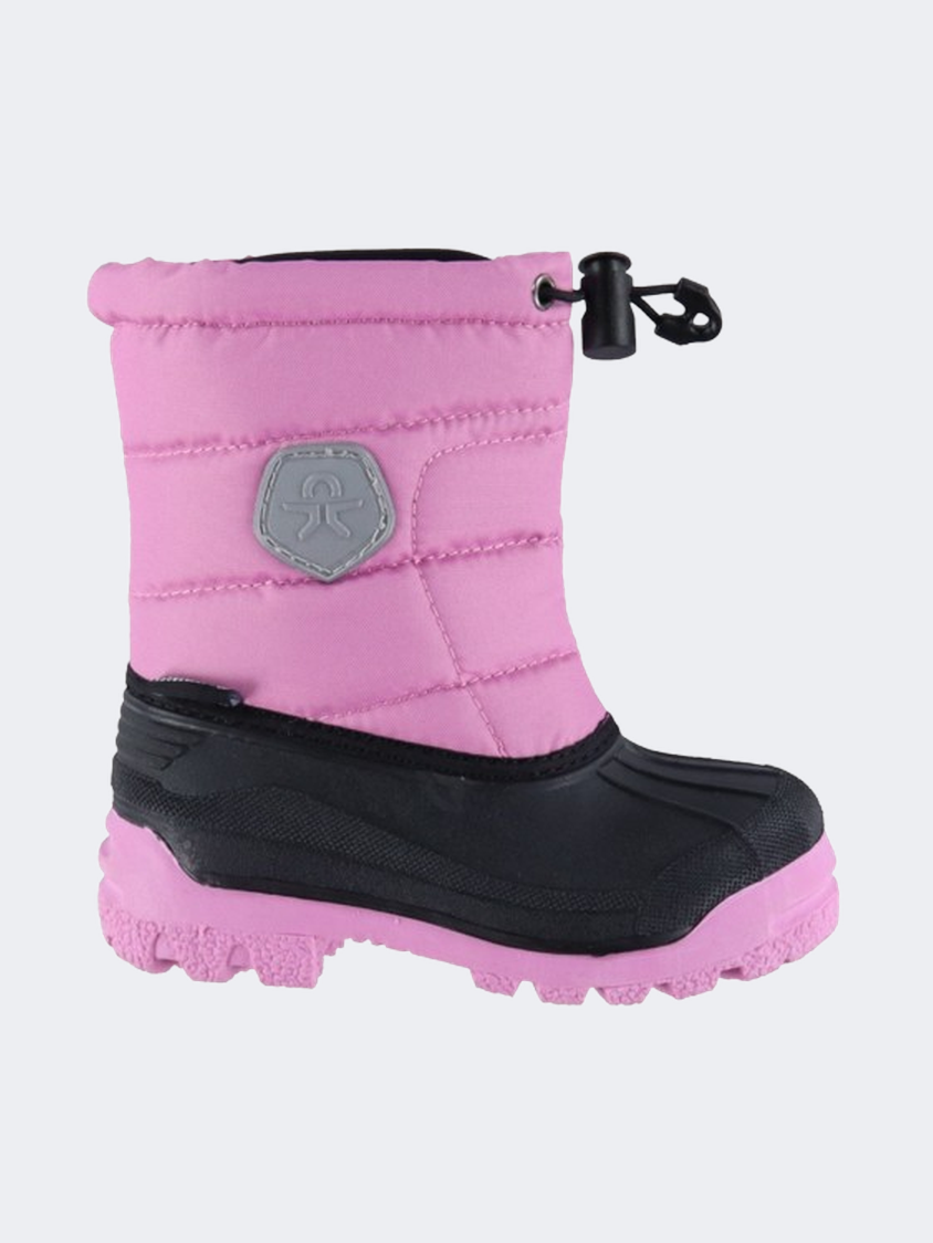 Beautiful Color Kids winter boots in black with a reflective logo on the outside of the shaft. The Color Kids winter boots have a high shaft in quilted textile, which can be tightened with an elastic cord at the top, so that cold air does not penetrate.