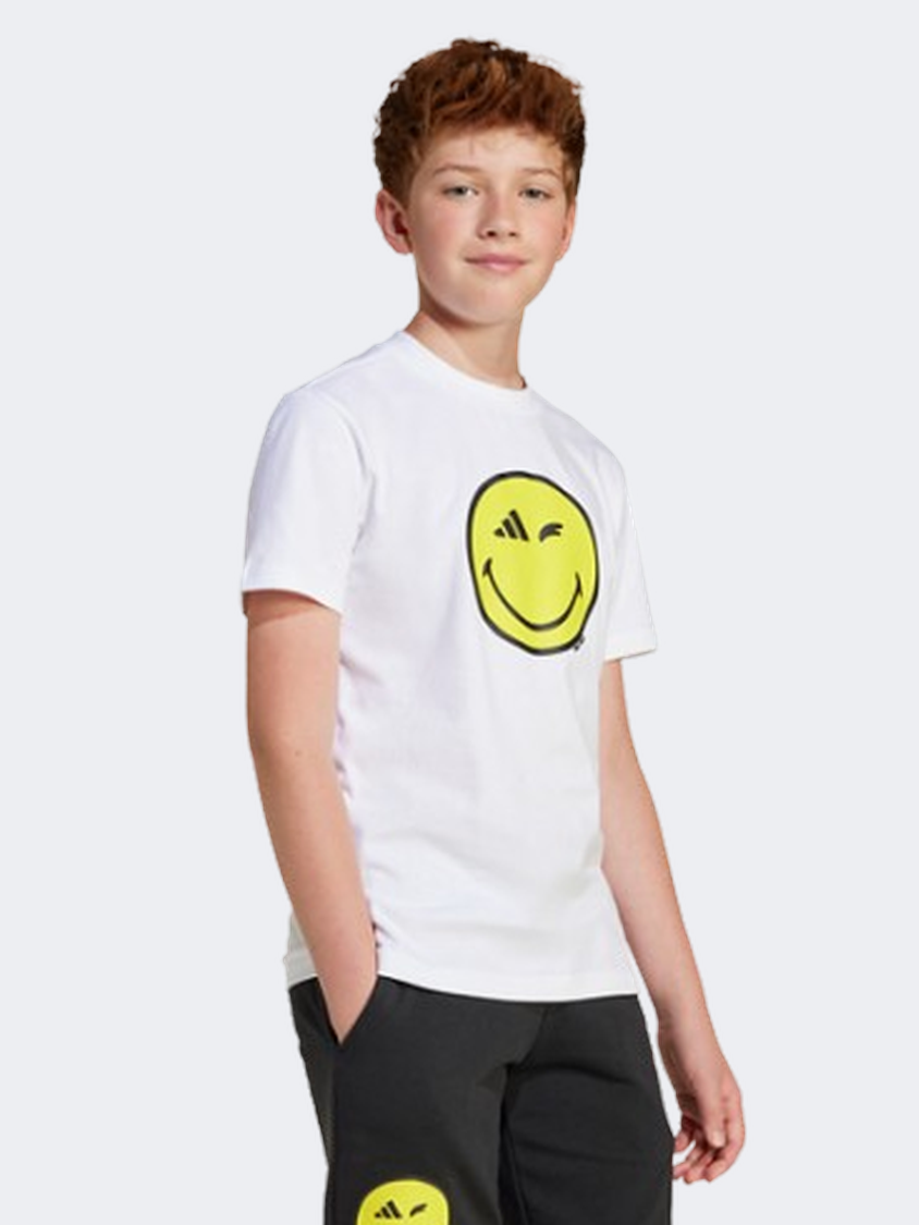Adidas X Smileyworld Graphics Kids Boys Sportswear T-Shirt White/Carbon/Yellow