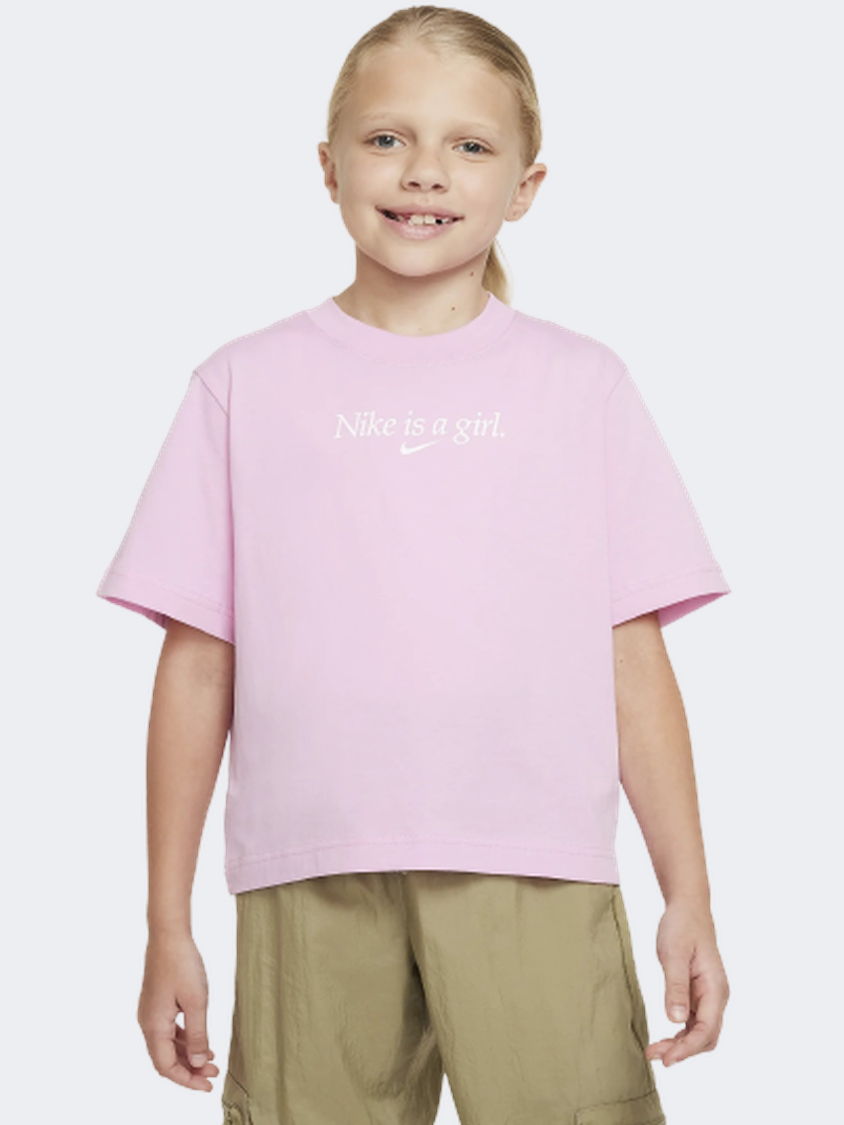 Nike Boxy Girls Lifestyle T-Shirt Pink/White