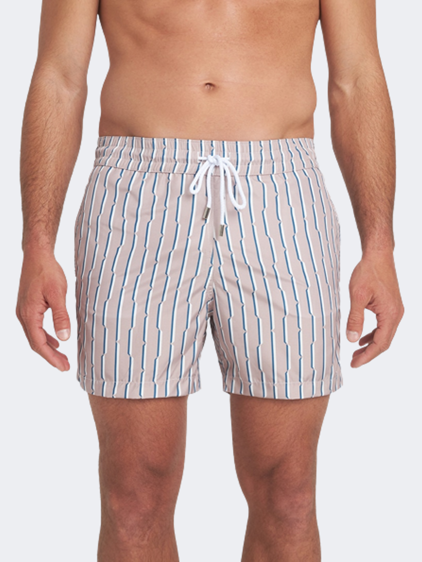 Mid-Length Swim Shorts with an elastic waistband and adjustable drawstrings, side pockets and a tailored back pocket with a customized button.