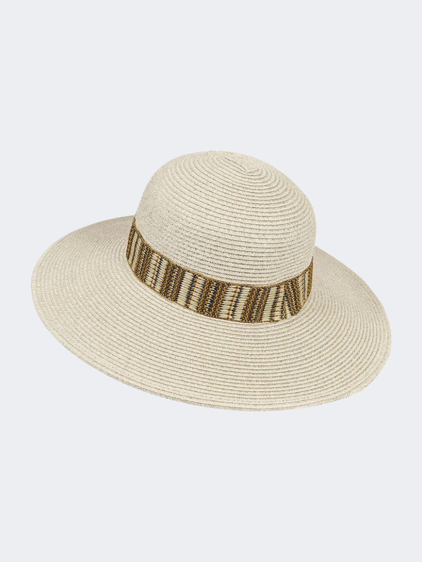 Women's hat in a floppy shape and a lovely woven ribbon around the perimeter of the hat.
