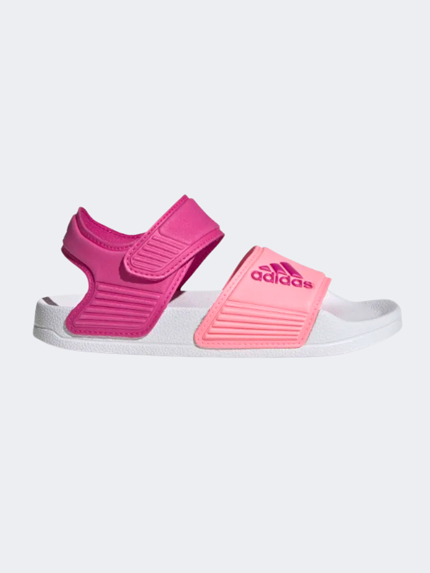 Inspired by classic Adilette slides, these kids' adidas sandals are perfect for sunny days of play in and out of the water. A hook-and-loop strap creates an easy on and off. The quick-drying upper lets them play in comfort until they're back on dry land.