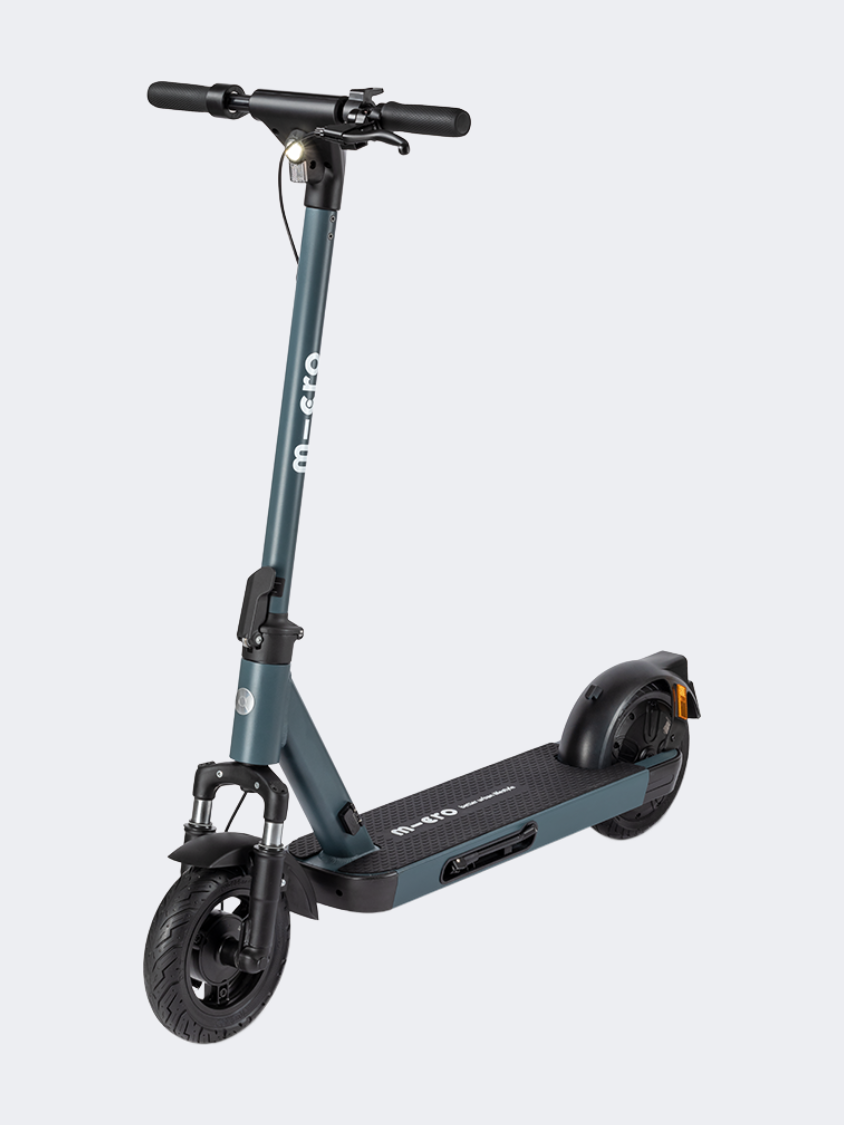 The Micro X30 is designed for point-to-point journeys and longer distances of up to 50 kilometers, where comfort and stability play an important role. Be it on the way to the office, university, or longer tours through the city. The large deck, front suspension, and 250 mm wheels guarantee a comfortable ride. The higher riding position ensures greater visibility on the road for you and other road users. The two independent braking devices and the homologated front and rear lights offer additional safety, even on night-time excursions. The integrated display on the handlebars always shows important riding information such as battery status or speed. Particularly practical: you can lock your e-scooter electronically with the Micro app.