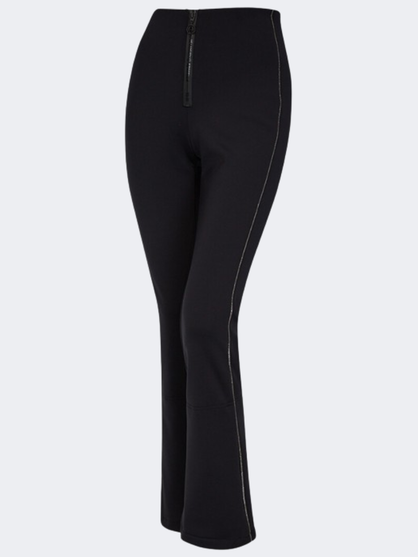 Sportalm ski pants with a high-cut waistband ensuring a comfortable fit and a laminated, visible zipper located in the middle. The sides of the model with an offset side seam are decorated with shiny, delicate stripes that optically slim the figure. The trouser legs are slightly flared with sewn-in gaiters to protect against bad weather conditions. For easy putting on and taking off ski boots, short zippers are sewn into the back of the legs. A nice and pleasant to the touch interior is their additional advantage.