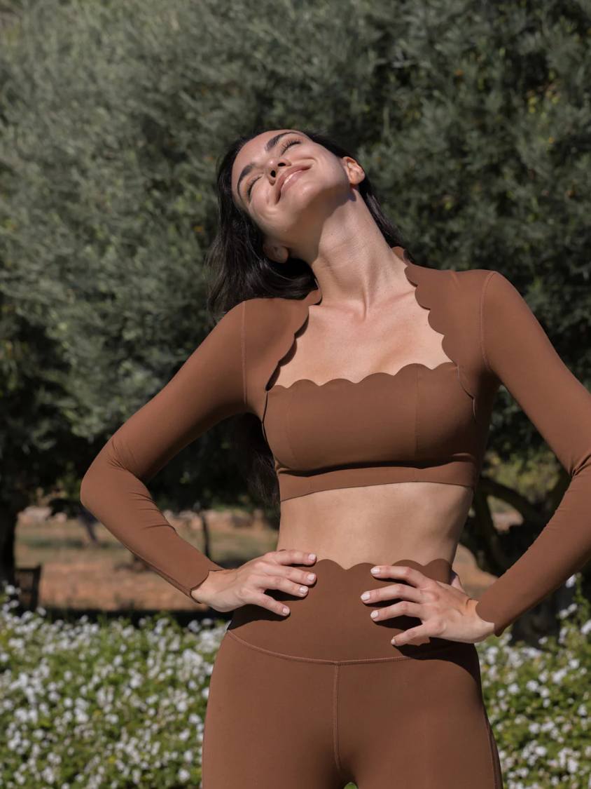 Wiskii Scallop Cropped Women Sportswear Long Sleeve Roasted Cocoa
