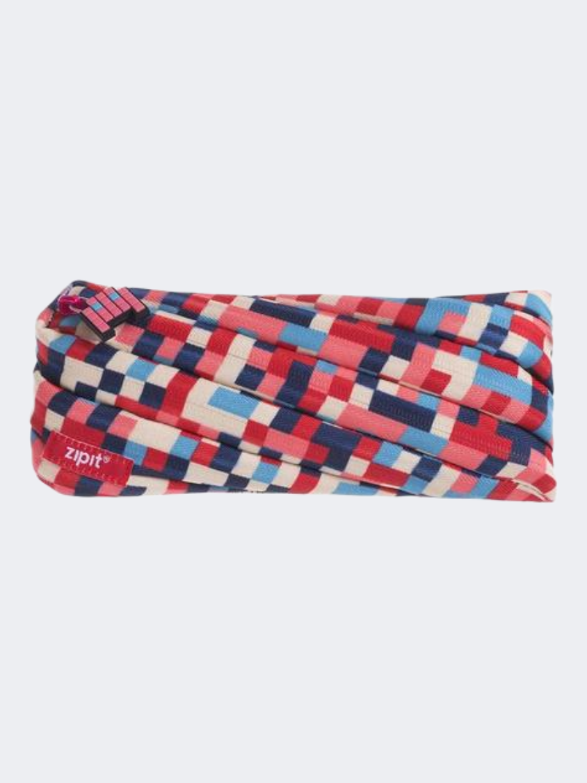The ZIPIT Pixel Pencil Case features a bold, pixel-inspired pattern in blue and red. It boasts a unique one-zipper design that opens wide for easy access, making it both functional and fun. Ideal for storing pens, pencils, makeup, or small accessories.